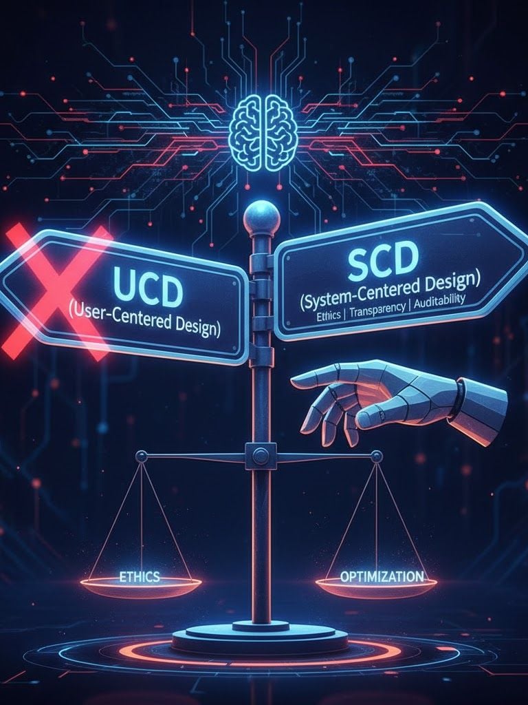 O UCD sempre focou em atender ao indivíduo, em otimizar a jornada para uma pessoa. Mas o que acontece quando essa otimização individual (feita por IA preditiva) causa um dano sistêmico?